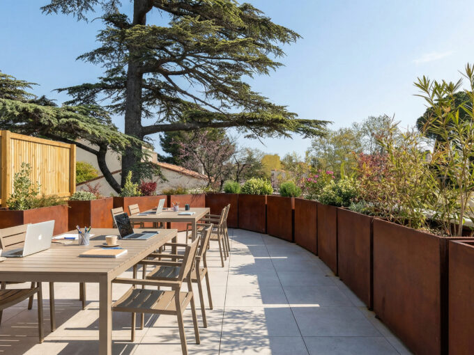 Imaginez-vous, confortablement installé sur une terrasse abritée du vent, offrant une douce ombre…