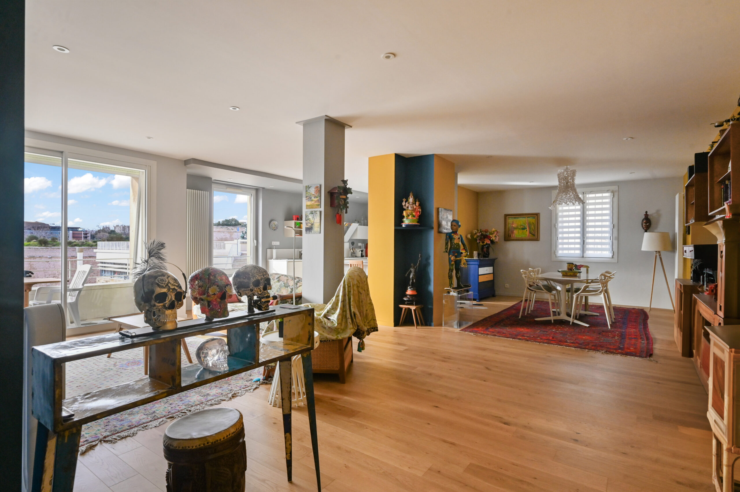 L’appartement est très lumineux grâce à ses trois expositions et dispose de nombreux rangements.