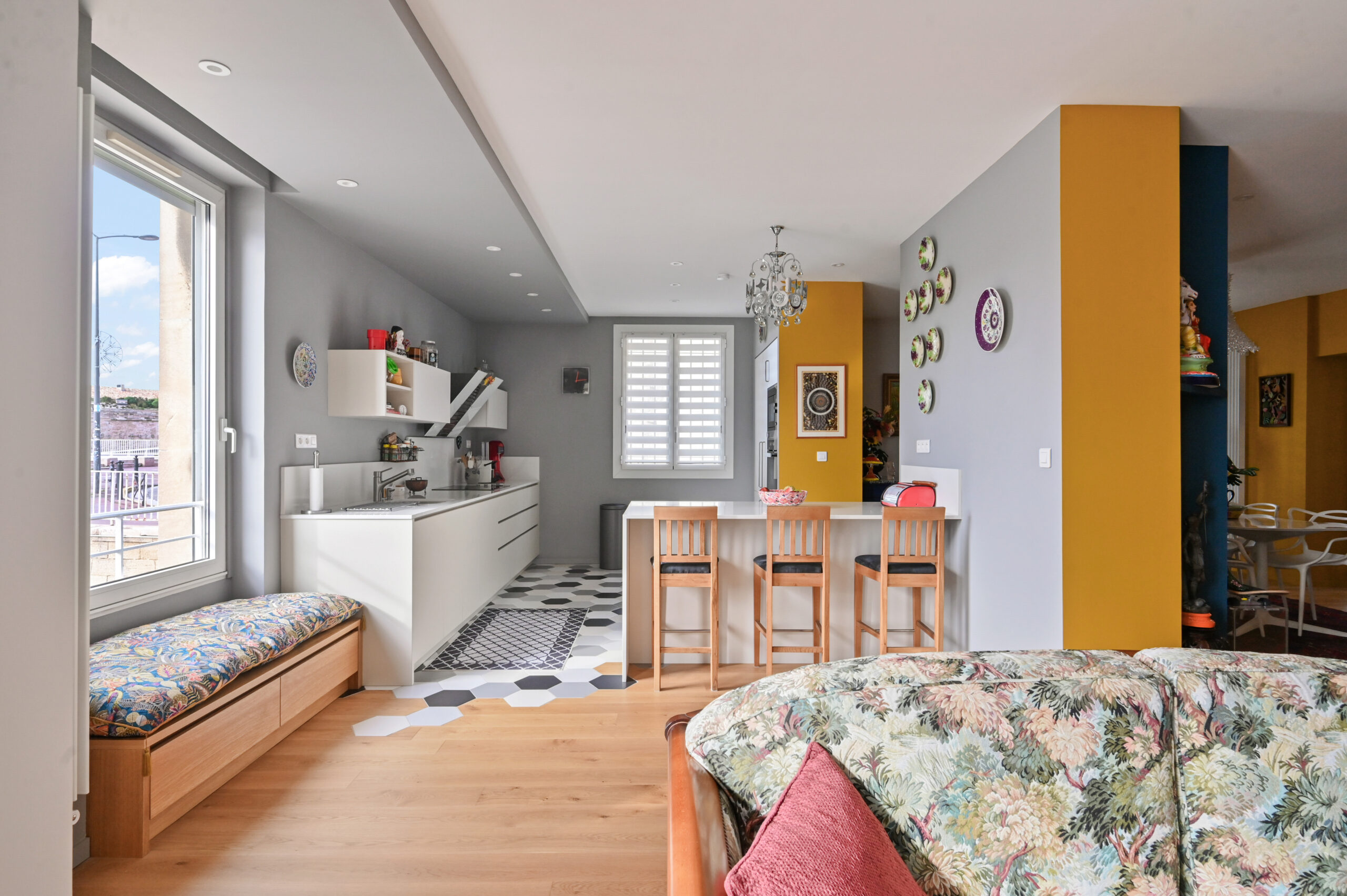 Idéalement placé, au calme mais à proximité des commerces et des transports, c’est un architecte qui été chargé de la rénovation de ce splendide appartement de 106m².